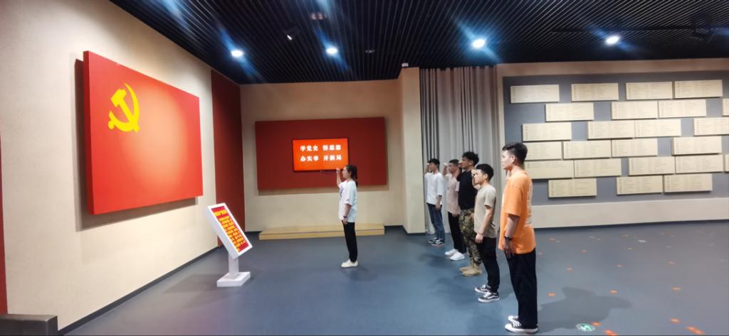 參觀結(jié)束后,班級(jí)里的黨員同志們?cè)谡褂[廳內(nèi)面向黨旗自發(fā)地重溫入黨誓詞,回顧入黨時(shí)的錚錚誓言,立志奮進(jìn)新時(shí)代,啟航新征程。