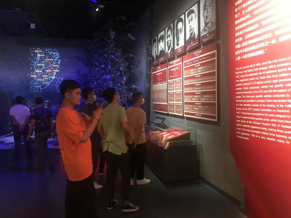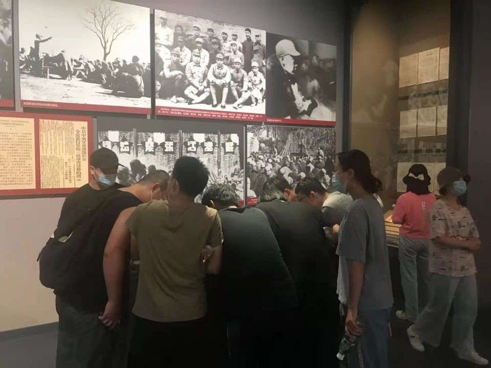 在講解員的帶領(lǐng)下,同學(xué)們徐徐地步入紀(jì)念館內(nèi),參觀學(xué)習(xí)了新四軍的發(fā)展史主題陳列,展館內(nèi)一件件珍貴的革命歷史文物,一張張革命英烈的照片,將大家引入到了那段艱苦奮斗、頑強(qiáng)拼搏的抗日戰(zhàn)爭(zhēng)歲月中去。館內(nèi)的許多壁畫(huà),形象直觀地向大家展示了戰(zhàn)爭(zhēng)的激烈場(chǎng)景。戰(zhàn)爭(zhēng)是殘酷的、無(wú)情的,它侵害的是一個(gè)個(gè)無(wú)辜的老百姓的生命,使人民生活在水深火熱之中。為了人民的幸福生活,一代代共產(chǎn)黨人、一輩輩革命先烈拋頭顱、灑熱血,前赴后繼,無(wú)怨無(wú)悔。面對(duì)大無(wú)畏的英雄史詩(shī),同學(xué)們紛紛表示:我們一定要銘記歷史,珍惜今天來(lái)之不易的美好生活,反對(duì)戰(zhàn)爭(zhēng),維護(hù)和平。江山就是人民,人民就是江山,共產(chǎn)黨打江山、守江山,守的就是人民的心。立足百年征程,我們要認(rèn)認(rèn)真真開(kāi)展黨史學(xué)習(xí),不忘黨的初心和使命,做到學(xué)史明理、學(xué)史增信、學(xué)史崇德、學(xué)史力行,學(xué)黨史、悟思想、辦實(shí)事、開(kāi)新局,不斷增強(qiáng)“四個(gè)意識(shí)”,堅(jiān)定“四個(gè)自信”,做到“兩個(gè)維護(hù)”,聽(tīng)黨話,感黨恩,跟黨走。