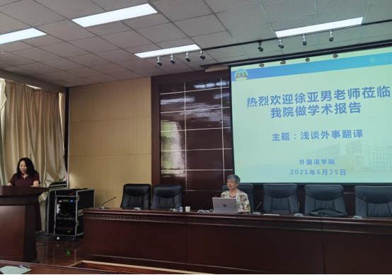 為慶祝學(xué)校建校70周年,加強學(xué)術(shù)交流,促進學(xué)科發(fā)展,我院組織了系列學(xué)術(shù)講座活動,特邀請前外交部翻譯室主任徐亞男老師于6月25日上午在雁塔校區(qū)第五會議室舉辦題為“淺談外事翻譯”的專題報告會。院長于艷英、副院長劉輝、陳武及全體師生參加了講座,講座由劉輝副院長主持。