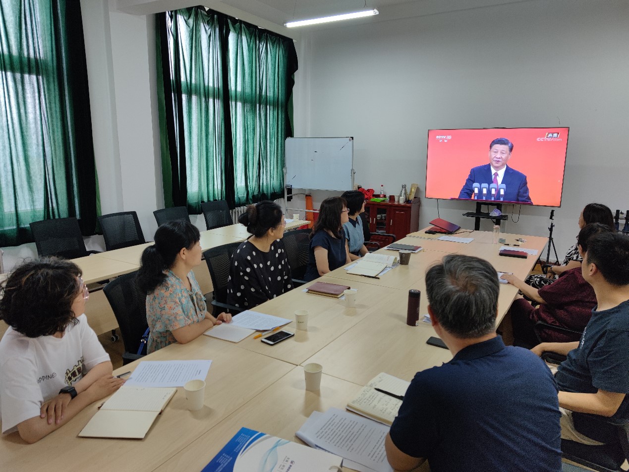 6月29日下午,外國語學院組織院黨委理論學習中心組成員在雁塔校區(qū)1號教學樓727會議室,集體觀看“七一勛章”頒授儀式。
