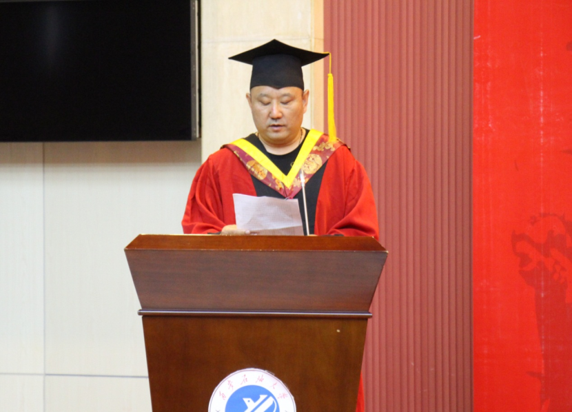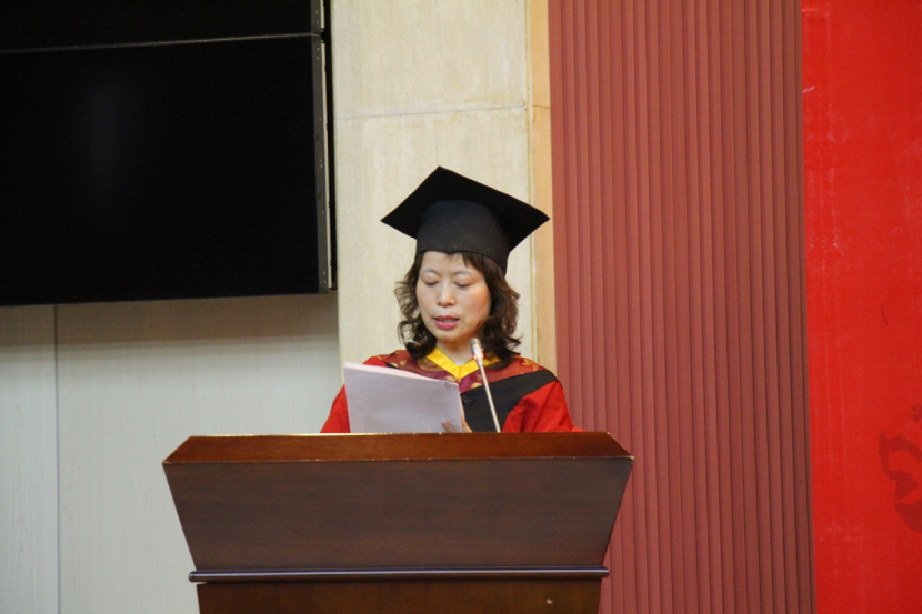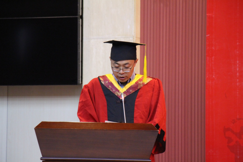 伴隨著國(guó)歌響起,全體參與人員起立,學(xué)位授予儀式拉開帷幕。學(xué)院副院長(zhǎng)吳勛教授宣讀了學(xué)位授予決定。