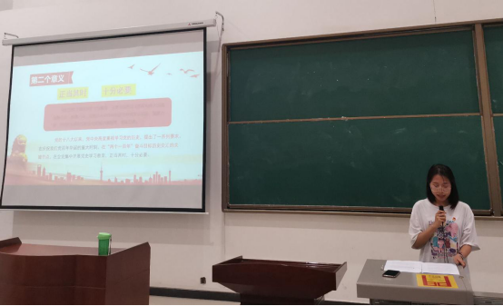 最后,何思怡同學(xué)提到總書記在黨史學(xué)習(xí)教育動員大會上的講話金句,“全黨同志要做到學(xué)史明理、學(xué)史增信、學(xué)史崇德、學(xué)史力行、學(xué)黨史、悟思想、辦實事、開新局,以昂揚姿態(tài)奮力開啟全面建設(shè)社會主義現(xiàn)代化國家新征程,以優(yōu)異成績迎接建黨一百周年?!敝该髁碎_展黨史學(xué)習(xí)教育的目的和意義。