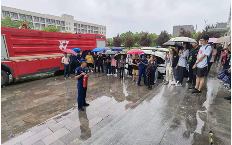 本次活動(dòng)分為安全知識(shí)宣講和滅火培訓(xùn)體驗(yàn)兩部分。保衛(wèi)處積極協(xié)調(diào)鄠邑區(qū)應(yīng)急消防大隊(duì),邀請(qǐng)鄠邑消防大隊(duì)豐京路消防救援站李哲講解了應(yīng)急避險(xiǎn)方式,自救互救方法以及應(yīng)急救援工作內(nèi)容,現(xiàn)場(chǎng)展示了單人消防裝備。滅火培訓(xùn)體驗(yàn)部分,消防隊(duì)員帶參與者現(xiàn)場(chǎng)零距離了解了消防車構(gòu)造及功能,并進(jìn)行了消防車水炮噴射演示,講解了滅火器使用方法,并現(xiàn)場(chǎng)與同學(xué)們互動(dòng)答疑。