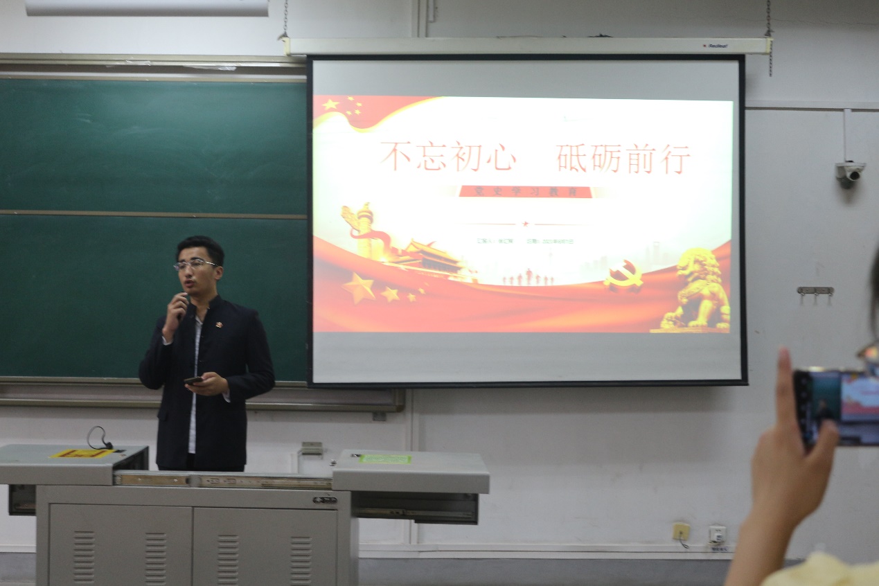 宣講現(xiàn)場(chǎng),徐匯軻同學(xué)圍繞不忘初心,砥礪前行這一主題,從全面了解黨史、把握黨史學(xué)習(xí)重點(diǎn)和黨史發(fā)展的核心、了解習(xí)近平新時(shí)代中國(guó)特色社會(huì)主義思想幾方面,為全體參會(huì)人員講述了中國(guó)共產(chǎn)黨的歷史。徐匯軻同學(xué)在宣講中談到,作為青年學(xué)生,要從百年黨史中汲取智慧和力量,在黨史學(xué)習(xí)教育中厚植愛(ài)黨、愛(ài)國(guó)、愛(ài)社會(huì)主義的情感,堅(jiān)定不移聽(tīng)黨話、跟黨走,做到學(xué)史明理、學(xué)史增信、學(xué)史崇德、學(xué)史力行,爭(zhēng)做擔(dān)當(dāng)民族復(fù)興大任的時(shí)代新人。