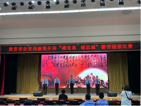 本次活動是與東儀路派出所共同出演《紅巖》中一個誦讀舞動選段。音樂系派出李佳蓉、秦春花、張格格、王熙4名學生黨員,在熟知整個節(jié)目流程后,制定了詳盡的的排練計劃,進行針對性訓練和細致耐心的指導,悉心講解并分解舞蹈動作,積極參加彩排工作。她們在廣泛征求警官們的意見和建議的基礎上,考慮到排練人員的年齡、身體狀況等因素,編排了既能展現警風警貌又歡快激昂的舞蹈,使每一名參賽警官都能看懂學會易于接受。比賽在雁塔區(qū)政府進行,警員同志們和我系學生黨員同學一起呈現的節(jié)目最終取得比賽第二名的好成績。