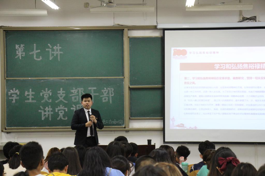 經(jīng)濟管理學院管科系學生第二黨支部副書記姬祥飛同志以“學習焦裕祿精神”為題開展宣講。他介紹了焦裕祿同志的生平事跡和焦裕祿精神的實質內(nèi)涵,指出大學生要樹立正確的世界觀、人生觀和價值觀,扣好人生第一粒扣子。