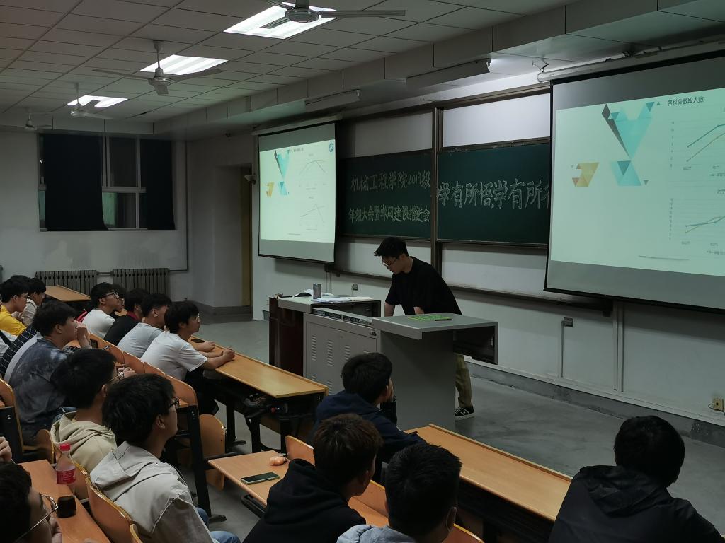 在各年級大會上,各位輔導員針對本年級具體工作進行安排。在2017級大會上,馬武軍老師對在外實習、參加復試的學生進行重點安全教育、叮囑同學們要在保證安全的前提下保證下充分參與實踐,會后一一聯(lián)系未就業(yè)的學生,做好就業(yè)信息傳達和就業(yè)指導,推動該部分學生順利就業(yè)。在2018級大會上,張靚老師重點強調(diào)了大三的考研和求職準備,她要求所有學生要明晰目標、腳踏實地、分解下沉任務,并根據(jù)實際情況及時調(diào)整求職和備考進度,并在會上再次做就業(yè)和考研動員。2019級輔導員邱迪老師通過對各專業(yè)未來發(fā)展前景的解析和展望,分專業(yè)進行了詳細指導,他希望同學們在穩(wěn)固自己成績的同時,多參加課外科技與實踐活動,做到縱向和橫向全面發(fā)展。在2020級大會上,馬舒宇老師重點強調(diào)了學風建設,分析了掛科率高的科目情況及其原因,并要求了四級備考的事項,同時還強調(diào)了班級、宿舍學習氛圍的建設。