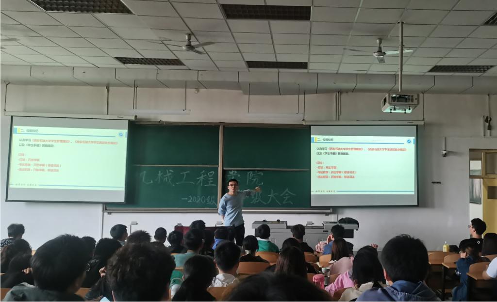 根據(jù)學校進一步嚴肅校規(guī)校紀加強學生教育管理專項教育的統(tǒng)一安排,機械工程學院于4月19日起陸續(xù)召開學生工作例會、線上線下結(jié)合的各級年級大會、各班班會、學生干部會議,認真學習《學生手冊》中《西安石油大學學生管理規(guī)定》、《西安石油大學學生違紀處分規(guī)定》等學生管理內(nèi)容,并進行校運動會、“五一”假期等安全紀律教育,同時安排各年級的重要事項。各年級輔導員主持相關會議。