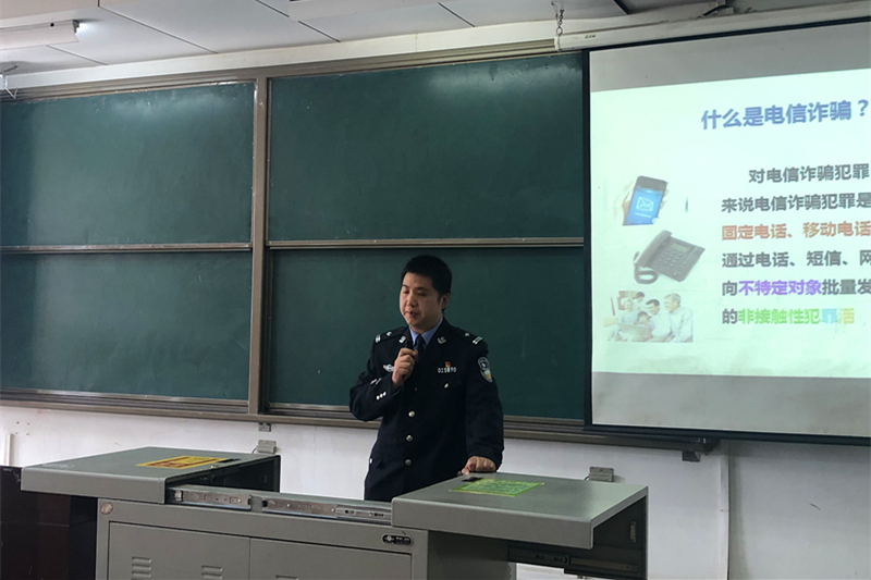 為進(jìn)一步增強(qiáng)學(xué)生安全意識(shí),提高學(xué)生安全防范能力,428日下午,石油工程學(xué)院“石工論壇”第五十二講“防范電信詐騙、筑牢安全防線”專題講座在鄠邑校區(qū)A139順利開展。西安市公安局鄠邑分局劉海警官和鄠邑區(qū)灃京路派出所馬凱警官應(yīng)邀為廣大學(xué)生做了安全知識(shí)培訓(xùn)。本次講座由我院2019級(jí)輔導(dǎo)員李剛老師主持,2020級(jí)輔導(dǎo)員祖力皮亞及200余名學(xué)生參加了此次活動(dòng)。