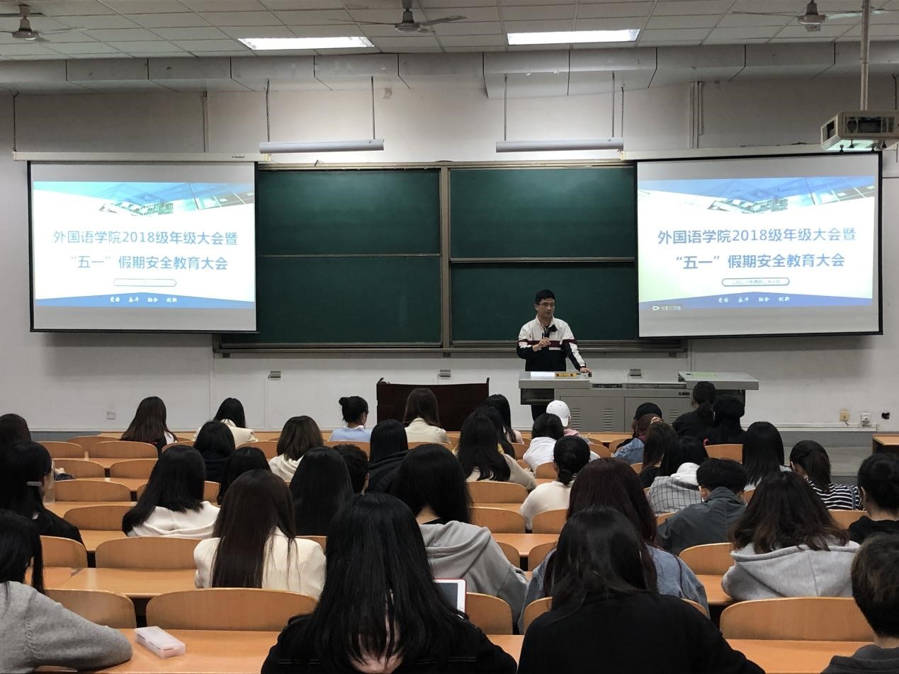 外國語學院通過召開日常安全教育管理和 “五一”假期專項安全教育大會等工作,認真排查學院安全隱患點,強調(diào)學風建設工作,積極營建積極向上的學院院風,鼓勵同學們積極參與學科競賽,創(chuàng)新創(chuàng)業(yè)競賽以及各項文體活動。希望同學們以獨立、自律要求自己,時刻牢記并遵守“品行端,學風正,紀律嚴”,腳踏實地,奮力成長。