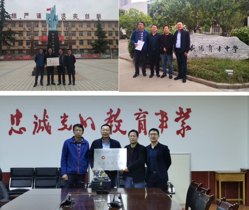 4月22日,教務(wù)處副處長陳熙,經(jīng)濟管理學(xué)院副院長吳勛、副教授杜小武一行3人赴乾縣二中、咸陽育才中學(xué)開展招生宣傳和優(yōu)秀生源基地簽約授牌工作。