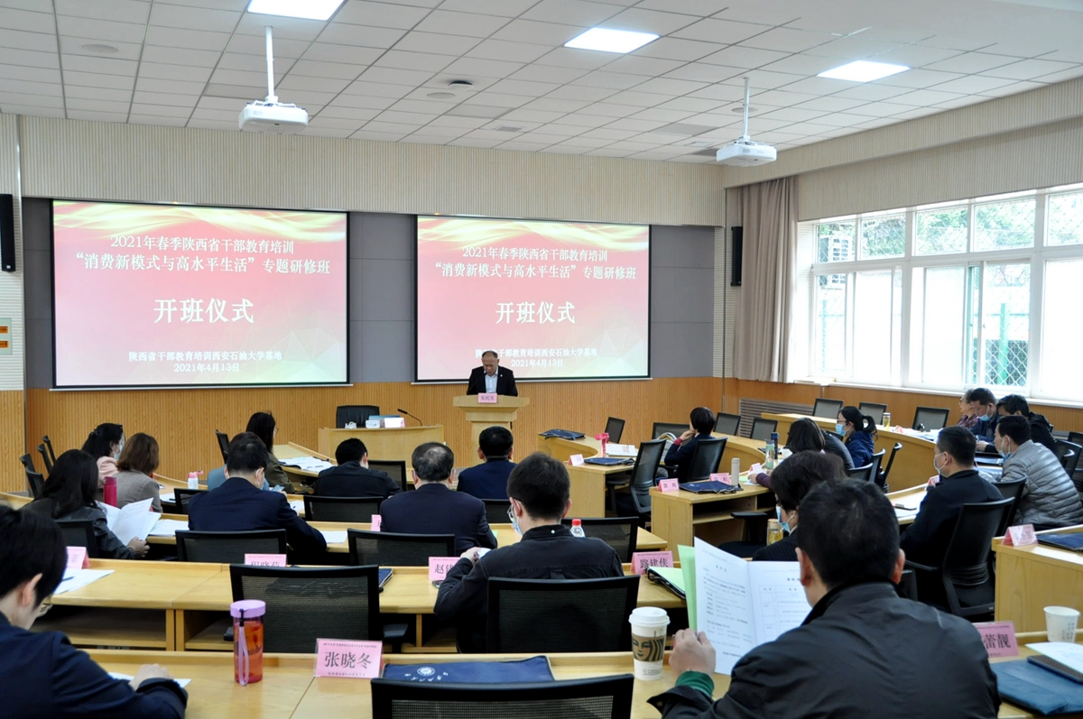 4月13日上午,2021年春季陜西省干部教育培訓(xùn)“消費(fèi)新模式與高水平生活”專(zhuān)題研修班在我校培訓(xùn)中心順利開(kāi)班。繼續(xù)教育學(xué)院副院長(zhǎng)吳民生參加開(kāi)班儀式,并簡(jiǎn)要介紹了我校發(fā)展沿革及培訓(xùn)基地工作開(kāi)展情況。