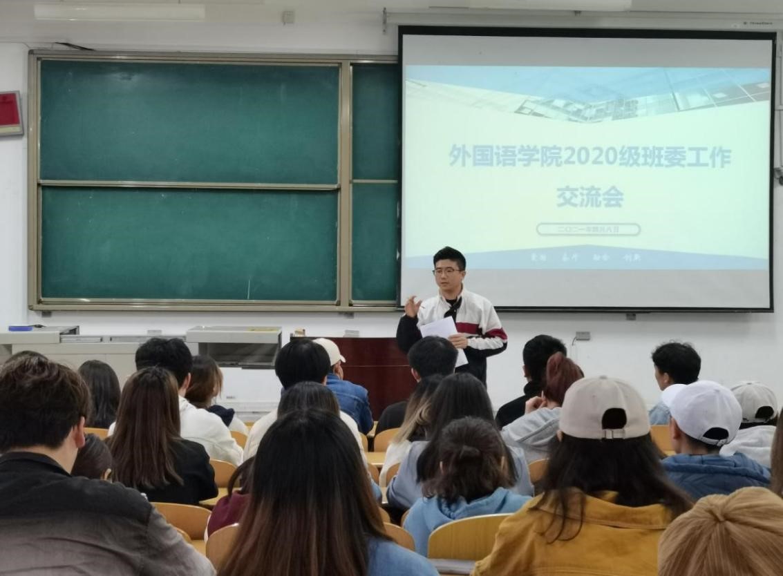 為加強(qiáng)學(xué)院學(xué)生自我管理能力,增強(qiáng)班級(jí)活力,提升班級(jí)集體競(jìng)爭(zhēng)力,營(yíng)建比拼趕超的學(xué)習(xí)氛圍,外國(guó)語(yǔ)學(xué)院于4月7日、8日在鄠邑校區(qū)院系樓314、B201召開(kāi)2019級(jí)、2020級(jí)班委工作交流會(huì)。年級(jí)輔導(dǎo)員陶李、陳浩,2019級(jí)、2020級(jí)全體班干部參加了年級(jí)交流會(huì)。
