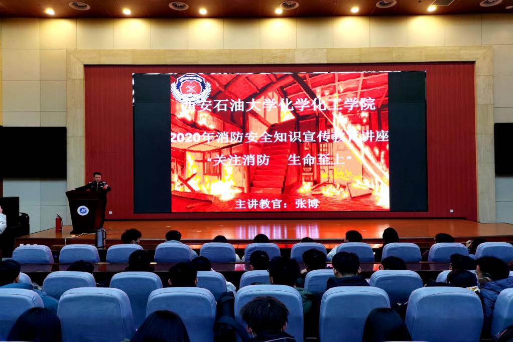 冬季安全教育與穩(wěn)定安全相結(jié)合。12月18日下午,我院實驗室安全知識講座以及消防安全知識宣傳教育講座在我校鄠邑校區(qū)弘石報告廳舉行。本次講座由西安石油大學(xué)保衛(wèi)部和化學(xué)化工學(xué)院聯(lián)合主辦,2020級輔導(dǎo)員主持, 2020級全體新生以及2017級、2018級、2019級各班安全委員參加,由化學(xué)化工學(xué)院實驗室主任張新強老師及陜西消安防火宣教中心、省消防協(xié)會特聘教員、主任講師張博教官作報告。西安石油大學(xué)保衛(wèi)部韓勇科長主持。實驗室主任張老師結(jié)合日常教學(xué)經(jīng)驗,向同學(xué)們系統(tǒng)講解了實驗操作層面的諸多注意事項和由于操作不當(dāng)而造成的安全隱患,提醒大家在實驗學(xué)習(xí)的過程中一切以安全為準(zhǔn)則,若出現(xiàn)突發(fā)狀況也應(yīng)冷靜應(yīng)對及時處理,做好預(yù)防措施。