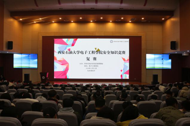 為了進一步加強大學(xué)生安全知識教育力度,提升大學(xué)生實驗室安全和日常生活安全意識,構(gòu)建和諧、穩(wěn)定、平安校園環(huán)境,幫助學(xué)生有效避免安全事故的發(fā)生。由我校實驗室管理處主辦,電子工程學(xué)院承辦的第一屆安全知識競賽復(fù)賽于12月21日在鄠邑校區(qū)弘石報告廳順利舉行。學(xué)生工作處副處長龐秉謙、保衛(wèi)處副處長張永華、電子工程學(xué)院黨委副書記畢軼慧、實驗室管理處實驗室管理科科長嚴(yán)銳濤、電子工程學(xué)院學(xué)生管理辦公室主任周毅華以及各年級輔導(dǎo)員老師出席本次活動。電子工程學(xué)院2020級和2019級400余名學(xué)生觀看了此次比賽。