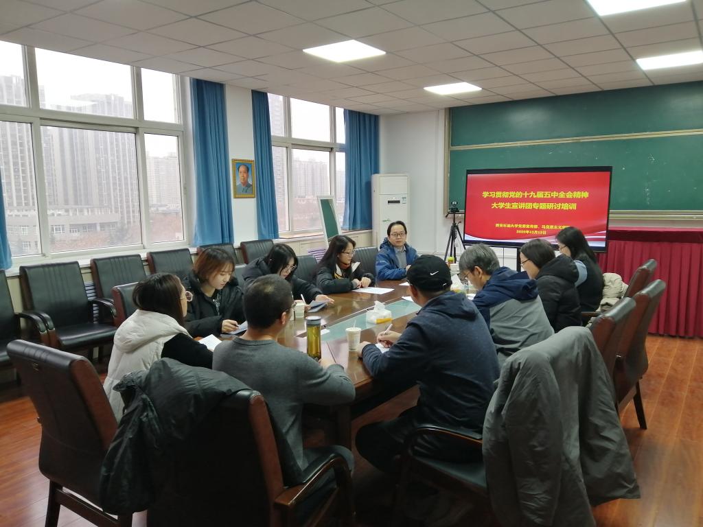 12月13日上午,馬克思主義學(xué)院舉辦了學(xué)習(xí)貫徹黨的十九屆五中全會(huì)精神大學(xué)生宣講團(tuán)專(zhuān)題培訓(xùn)會(huì),會(huì)議采用騰訊會(huì)議線上線下相結(jié)合的方式在雁塔校區(qū)1#818、鄠邑校區(qū)經(jīng)管人文樓325室同時(shí)召開(kāi)。大學(xué)生宣講團(tuán)全體成員和各小組指導(dǎo)教師參加了會(huì)議。本次會(huì)議由學(xué)院副院長(zhǎng)肖發(fā)榮老師主持。