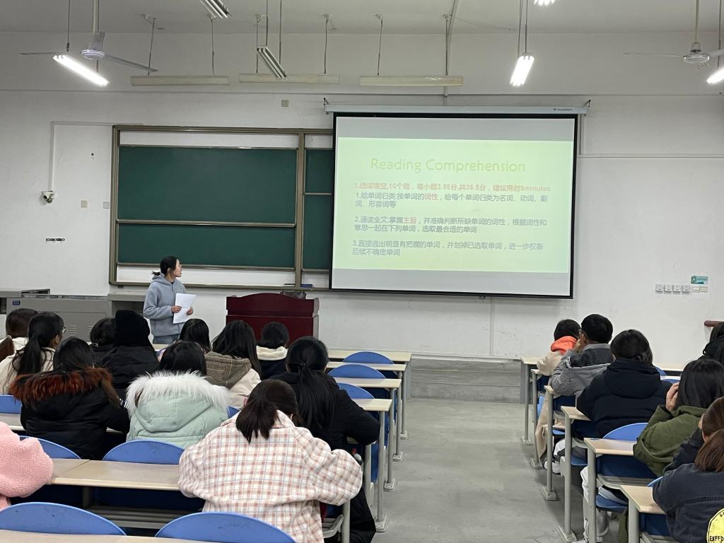 此次英語四級考前強化班,為備戰(zhàn)四級考試的同學提供了具體有效的應試策略和方法,不僅對督促學生主動學習以及提升英語四級考試應試水平有著積極作用,還進一步增強了學生應考的自信心。