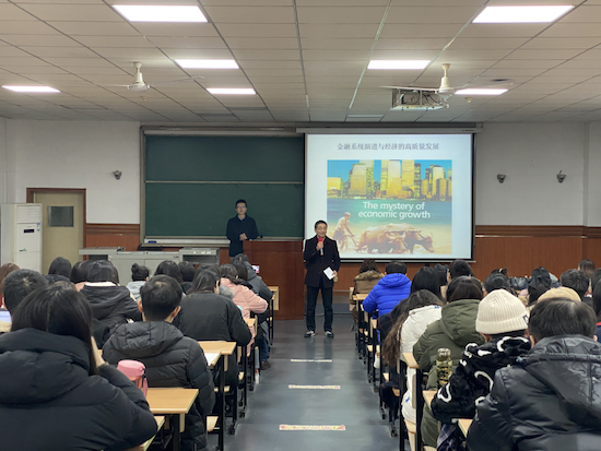 侯教授通過對世界各國金融系統(tǒng)演進(jìn)歷史的梳理和歸納,闡釋現(xiàn)代金融體系的分類、功能,以及金融發(fā)展與經(jīng)濟(jì)增長之間的邏輯關(guān)系。特別探討了中國雙循環(huán)發(fā)展格局逐漸形成的背景下,金融系統(tǒng)發(fā)展與風(fēng)險(xiǎn)防范在促進(jìn)我國實(shí)現(xiàn)更高質(zhì)量、更有效率和更可持續(xù)的發(fā)展目標(biāo)中將要發(fā)揮的重要作用。講座現(xiàn)場聽眾認(rèn)真記錄思考,學(xué)術(shù)氣氛濃郁。講座結(jié)束后,李俊亭副院長、經(jīng)濟(jì)系主任李春霄博士與侯教授就金融學(xué)學(xué)科建設(shè)和未來合作進(jìn)行了深入交流。
