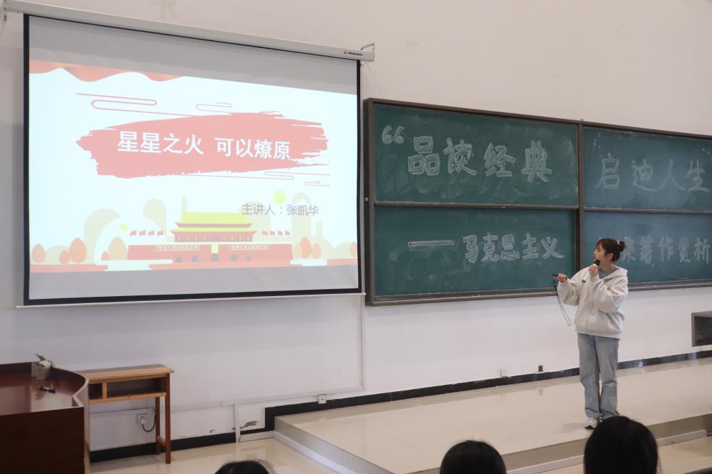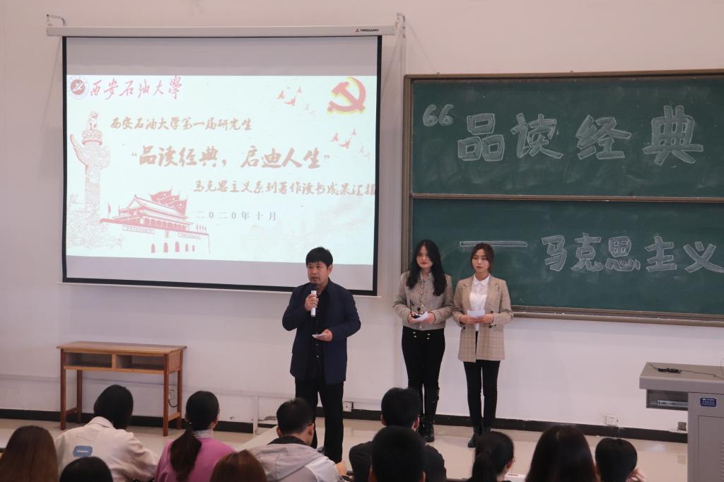 思想喻花,實踐謂火。以馬克思主義“思想之花”點燃中國共產黨領導的革命、建設、改革“實踐之火”的盛大奇觀,在近百年中華大地上輝煌上演,構成人類發(fā)展史上精彩奪目的篇章。為配合《中國特色社會主義理論與實踐研究》的課堂講授,使得本門課程學習理論與聯(lián)系實際相結合,弘揚中華優(yōu)秀傳統(tǒng)文化和社會主義先進文化,指引當代大學生樹立正確的世界觀,人生觀與價值觀,2020年10月-11月,研究生院和馬克思主義學院成功舉辦了首屆研究生“品讀經典,啟迪人生”——馬克思主義經典著作賞析報告會。