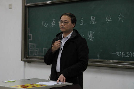 為進(jìn)一步開展大學(xué)生心理健康教育工作,落實(shí)我校2020年心理育人文化節(jié)活動計(jì)劃,11月19日中午,由學(xué)生心理成長指導(dǎo)中心主辦、電子工程學(xué)院承辦的“朋輩互助,友愛班級”心理育人主題班會比賽在鄠邑校區(qū)B210教室舉行。本次比賽由學(xué)生工作處副處長李強(qiáng)、教務(wù)處副處長易和平、經(jīng)濟(jì)管理學(xué)院黨委副書記趙海濤、學(xué)生心理成長指導(dǎo)中心主任肖瓊、黨委宣傳部廣電中心主任楊明擔(dān)任評委,部分院(系)主管學(xué)生工作負(fù)責(zé)人、心理專干、學(xué)生心理成長指導(dǎo)中心教師、心理委員及學(xué)生代表共150余人觀看了本次比賽。