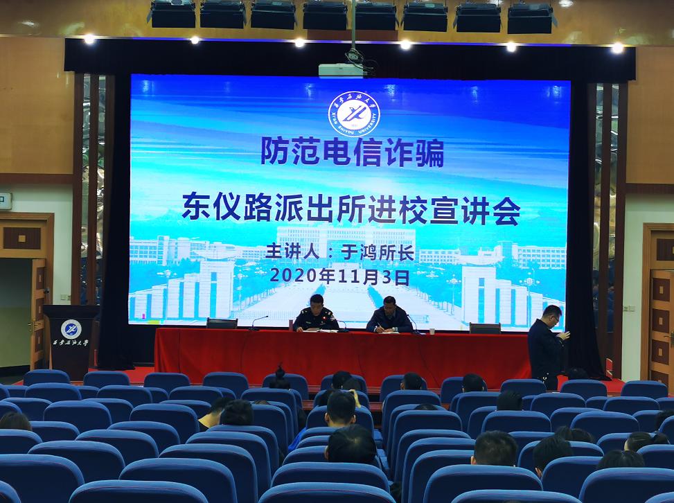 東儀路派出所所長(zhǎng)于鴻就如何防范電信詐騙,結(jié)合實(shí)際發(fā)生在身邊的案件,給現(xiàn)場(chǎng)研究生詳細(xì)講解了常見電信詐騙的內(nèi)容及形式,提醒同學(xué)們提高防騙意識(shí),預(yù)防此類案件的發(fā)生。