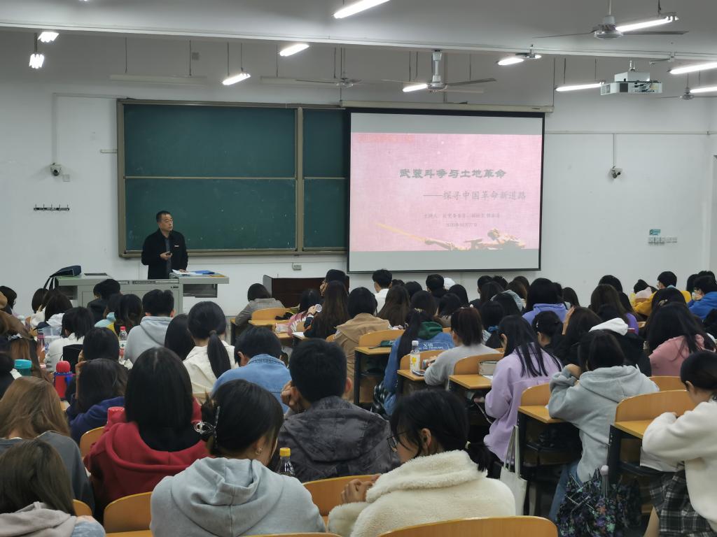 1027日晚,程永清副校長(zhǎng)以《武裝斗爭(zhēng)與土地革命——探索中國(guó)革命新道路》為題,在鄠邑校區(qū)教學(xué)B區(qū)114教室為人文學(xué)院教師、學(xué)生黨員共260余人講授黨史專題講座第二講。