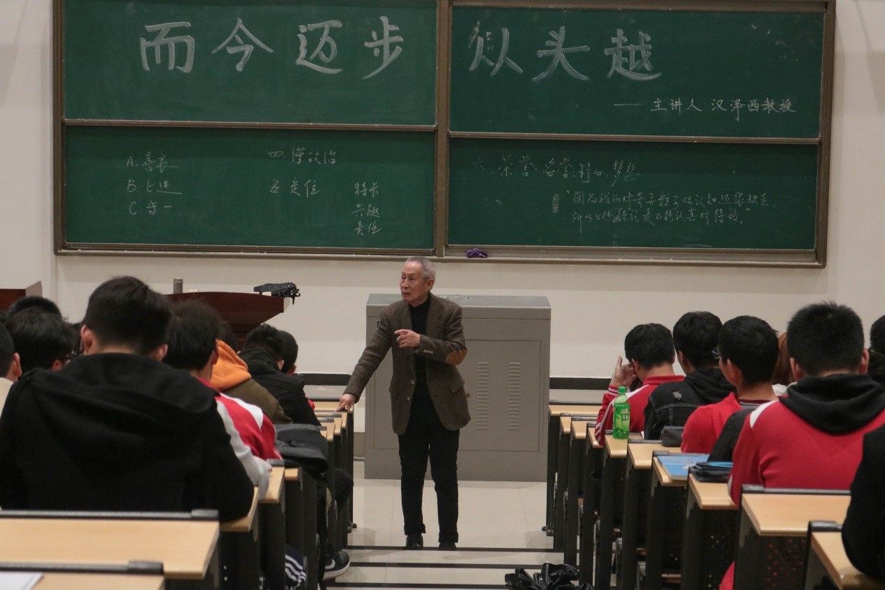 報(bào)告會上,漢澤西教授首先以“大學(xué)是什么”為主題講起,引用世界名校校長的名言解讀了“大學(xué)”的內(nèi)涵與意義,闡述了自己對大學(xué)的認(rèn)識,點(diǎn)明了大學(xué)生與大學(xué)的密切關(guān)系。接著,漢教授提出“大學(xué)生要干什么”的問題,從多方面引導(dǎo)同學(xué)們要學(xué)會做人、豐富閱歷;最后,針對理工類專業(yè)學(xué)生短板就如何學(xué)習(xí)的問題,漢教授給同學(xué)們提出了可行性的意見和建議,鼓勵(lì)同學(xué)們志存高遠(yuǎn),砥礪奮斗,將個(gè)人努力與國家的發(fā)展緊密聯(lián)系在一起,既要仰望星空,又要腳踏實(shí)地。