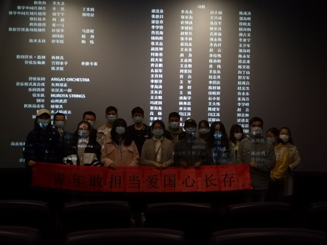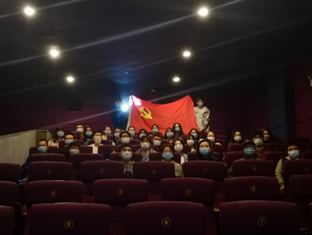 2020年10月13日晚上18.30,全體黨員冒雨準時到場,戴好口罩,做好防護措施,有序地進入電影院,等待電影開始。