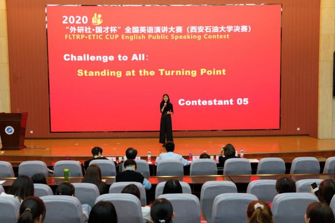 9月24日19:00外國(guó)語學(xué)院在弘石報(bào)告廳舉辦2020“外研社?國(guó)才杯”全國(guó)英語演講大賽(西安石油大學(xué)決賽)。外國(guó)語學(xué)院副院長(zhǎng)陳武、英語系主任鐘澤波、學(xué)管辦主任張帆、公共外語教學(xué)一部副主任李元元和公共外語教學(xué)二部畢瑩老師擔(dān)任評(píng)委,全校共有200余名學(xué)生參加。
