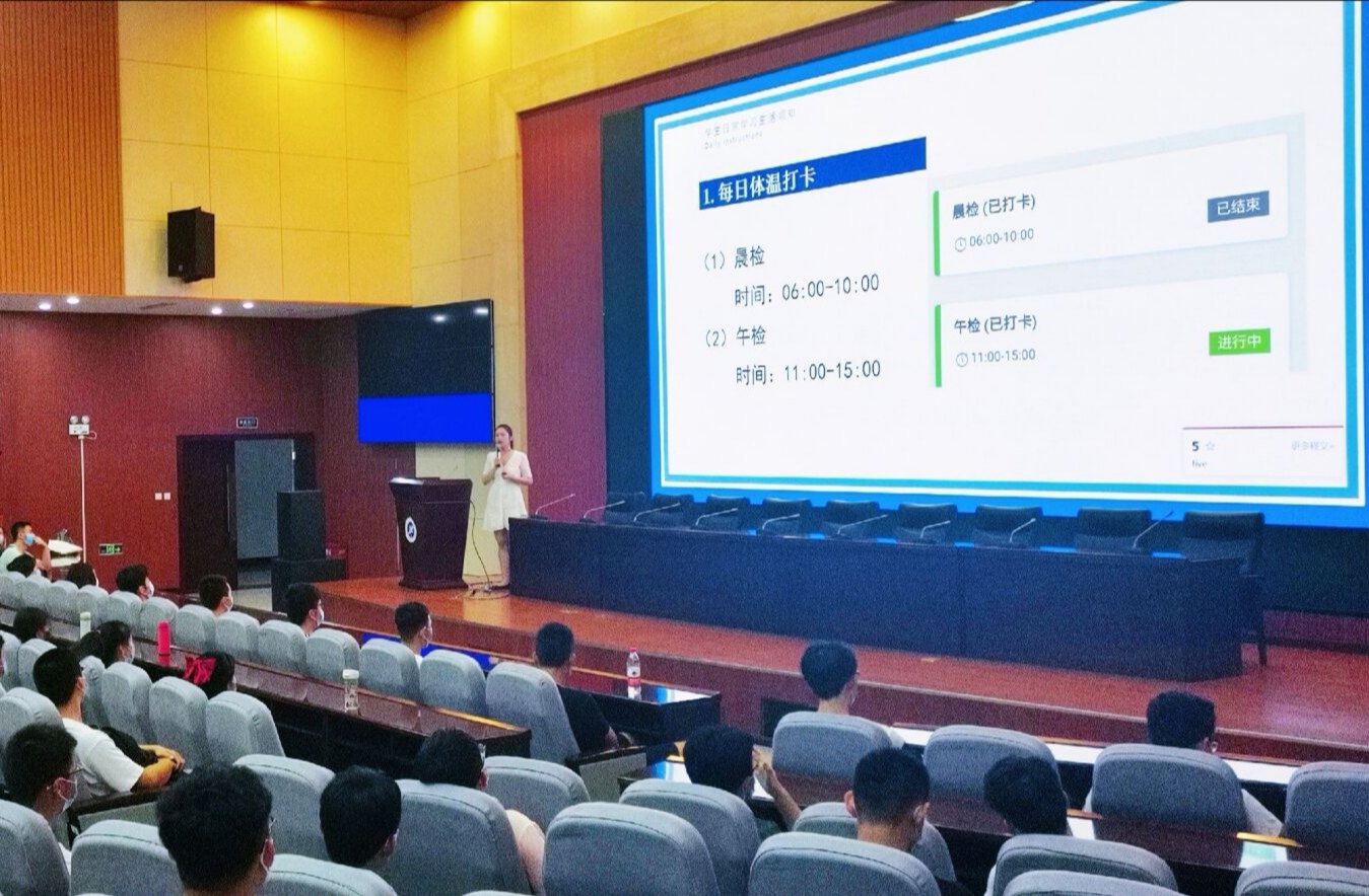 本次大會(huì)從嚴(yán)格健康監(jiān)測(cè)管理、嚴(yán)格校園出入管理和大學(xué)的意義三方面展開(kāi)。其中嚴(yán)格健康監(jiān)測(cè)管理要求學(xué)生按時(shí)準(zhǔn)確完成每天晨、午檢打卡,如遇同學(xué)有發(fā)熱癥狀應(yīng)第一時(shí)間聯(lián)系輔導(dǎo)員老師并及時(shí)就醫(yī);嚴(yán)格校園出入管理要求學(xué)生確因特殊原因需要外出的,須在我在校園管理平臺(tái)上提交相關(guān)證明材料辦理請(qǐng)假手續(xù)。大會(huì)后半部分圍繞大學(xué)對(duì)普通人的意義展開(kāi),沈軒羽老師告誡同學(xué)們,大學(xué)是人生的跳板,要想順利步入廣闊天地,就得好好利用大學(xué)這四年,并在日常的學(xué)習(xí)與生活中為自己確立明確目標(biāo),要學(xué)會(huì)時(shí)間管理,做自己的時(shí)間管理大師。假期線上自由的學(xué)習(xí)時(shí)光已經(jīng)過(guò)去,沈老師希望同學(xué)們能夠反思過(guò)去,展望未來(lái),端正姿態(tài)來(lái)迎接余下的大學(xué)生活,在多年后回顧大學(xué)生活時(shí),不悔當(dāng)初。