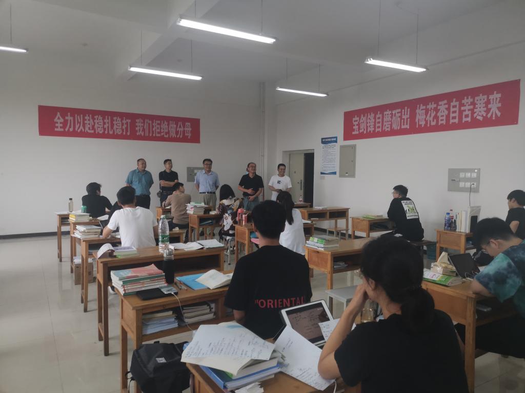 學(xué)生處處長(zhǎng)趙健、校黨委組織部副部長(zhǎng)王亮、學(xué)生處副處長(zhǎng)龐秉謙先后到機(jī)械工程學(xué)院、電子工程學(xué)院學(xué)生考研自習(xí)室慰問考研學(xué)生,機(jī)械工程學(xué)院黨委書記田黨宏、黨委副書記劉笛,電子工程學(xué)院黨委副書記畢軼慧陪同。在學(xué)生考研自習(xí)室內(nèi),趙健處長(zhǎng)表達(dá)了學(xué)校對(duì)全體備戰(zhàn)考研學(xué)生不畏酷暑堅(jiān)持留校學(xué)習(xí)的關(guān)心和鼓勵(lì)。他表示,考研是一個(gè)人成長(zhǎng)成才的重要途徑,同學(xué)們只要明確目標(biāo)、堅(jiān)定信念,在良好的學(xué)習(xí)環(huán)境中勤奮鉆研、持之以恒,就一定能夠考取自己理想的目標(biāo)院校。學(xué)校將盡力解決同學(xué)們學(xué)習(xí)生活中遇到的困難,為同學(xué)們提供舒適的學(xué)習(xí)場(chǎng)所。他建議同學(xué)們注意勞逸結(jié)合,學(xué)會(huì)自我調(diào)節(jié)壓力,適度放松,尤其是在疫情防控期間注意加強(qiáng)自我保護(hù)。在學(xué)習(xí)過程中要多向老師求教,多與同學(xué)溝通,分享交流學(xué)習(xí)方法及學(xué)習(xí)心得,互幫互助、攜手共進(jìn)。他要求同學(xué)們要堅(jiān)定信心、穩(wěn)扎穩(wěn)打、循序漸進(jìn),以積極向上的心態(tài)高效率學(xué)習(xí),努力實(shí)現(xiàn)既定目標(biāo)。