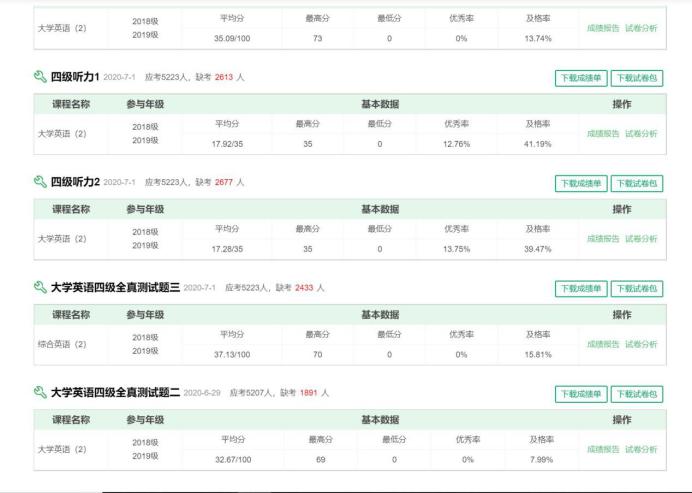 為進一步加強我校學(xué)生對自身英語水平認(rèn)知,增加對大學(xué)英語四級考試規(guī)則的熟悉度,以積極的心態(tài)面對大學(xué)英語四級考試,提高大學(xué)英語四級考試通過率,在教務(wù)處、學(xué)生工作部和信息中心的支持下,外國語學(xué)院628日至710日分別組卷8套四級模擬題、8套四級聽力測試題,對學(xué)生進行模擬測試。此次四級模擬考試面向全校學(xué)生以線上和線下兩種方式進行,線下模擬考場設(shè)在各四級強化輔導(dǎo)班教室,線上使用訊飛AI考試系統(tǒng),學(xué)生通過在線答題進行模擬考試。截至目前,我校共有19504人次通過線上線下方式參加了此次系列四級模擬考試,共有14851人次通過線上線下方式參加了此次系列四級聽力測試。