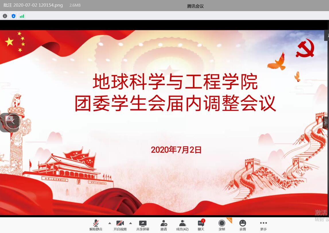 2020年7月2日上午,地球科學(xué)與工程學(xué)院團(tuán)委學(xué)生會屆內(nèi)調(diào)整會議通過騰訊會議舉行。院團(tuán)委書記邱嶺、組織員張陽、輔導(dǎo)員杜蕾及團(tuán)委學(xué)生會全體干部參加會議,會議由學(xué)生會主席團(tuán)成員李富康主持。