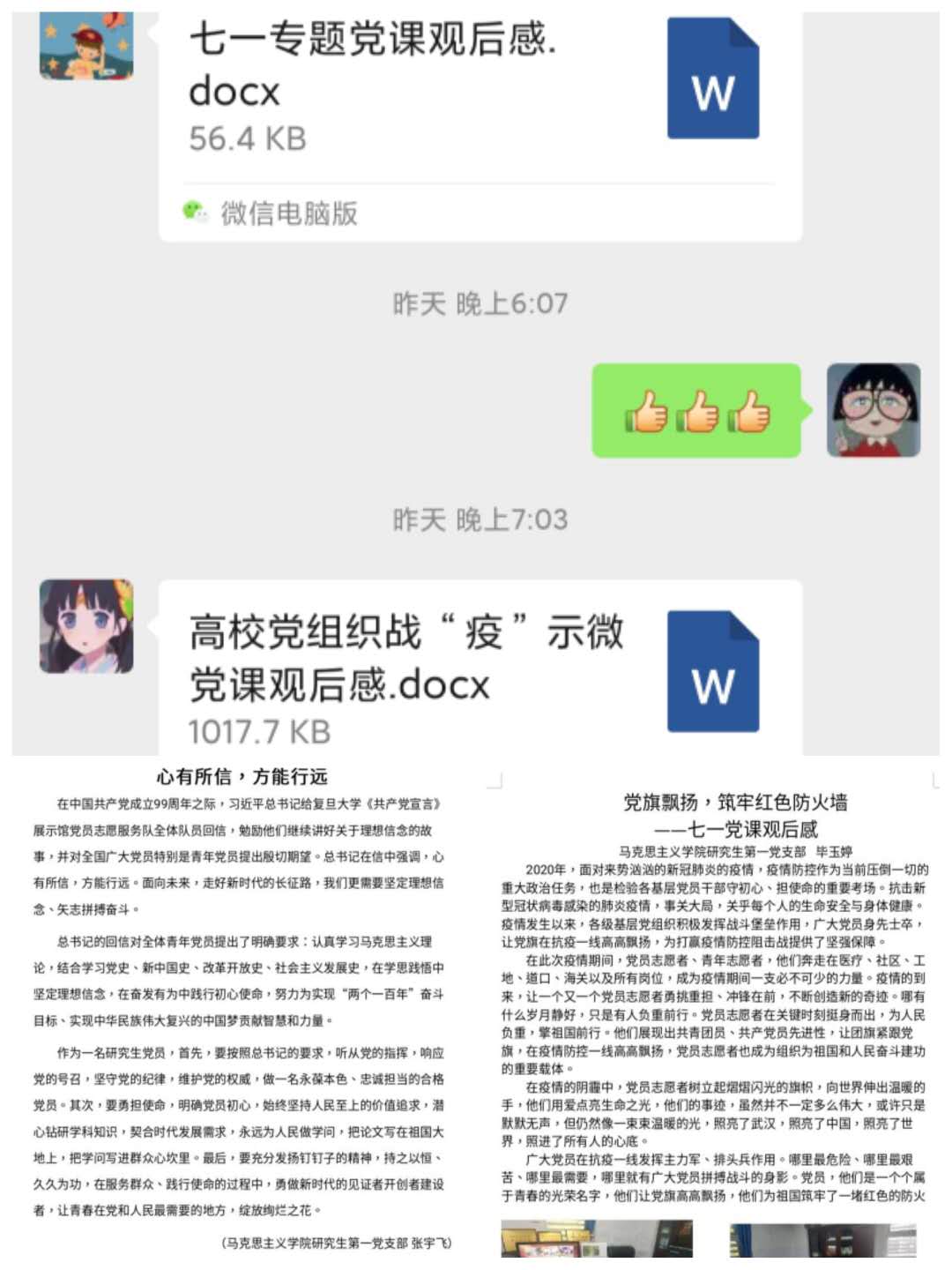 在黨的99歲生日當(dāng)天,收看這場意義非凡的戰(zhàn)“疫”“七一”專題微黨課,通過學(xué)習(xí)抗疫英雄事跡和偉大抗疫精神,激發(fā)了廣大黨員的責(zé)任擔(dān)當(dāng)和愛黨愛國熱情,堅定了全體師生以初心踐行教育報國的時代使命,我們各級黨組織要筑牢紅色防火墻,讓鮮紅的黨旗始終高高飄揚。