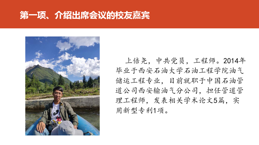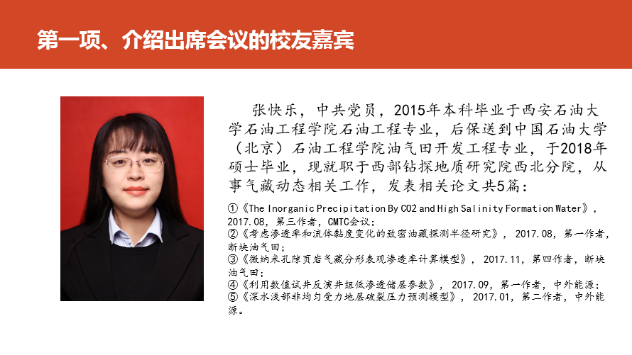 為進(jìn)一步鞏固《大學(xué)生職業(yè)規(guī)劃與就業(yè)指導(dǎo)(2)》課程效果,學(xué)習(xí)優(yōu)秀校友經(jīng)驗,增強(qiáng)我院2021屆畢業(yè)生個人職業(yè)規(guī)劃能力與就業(yè)發(fā)展意識,石油工程學(xué)院于623日晚7時,利用線上騰訊會議舉辦優(yōu)秀校友就業(yè)指導(dǎo)分享會。本次會議分別邀請到我院2010級校友、中石油管道分公司上倍堯,2011級校友、西部鉆探地質(zhì)研究院張快樂與中石油大港油田孫宇出席,會議由2017級輔導(dǎo)員孫浩哲主持,石工院2017級全體學(xué)生參加。