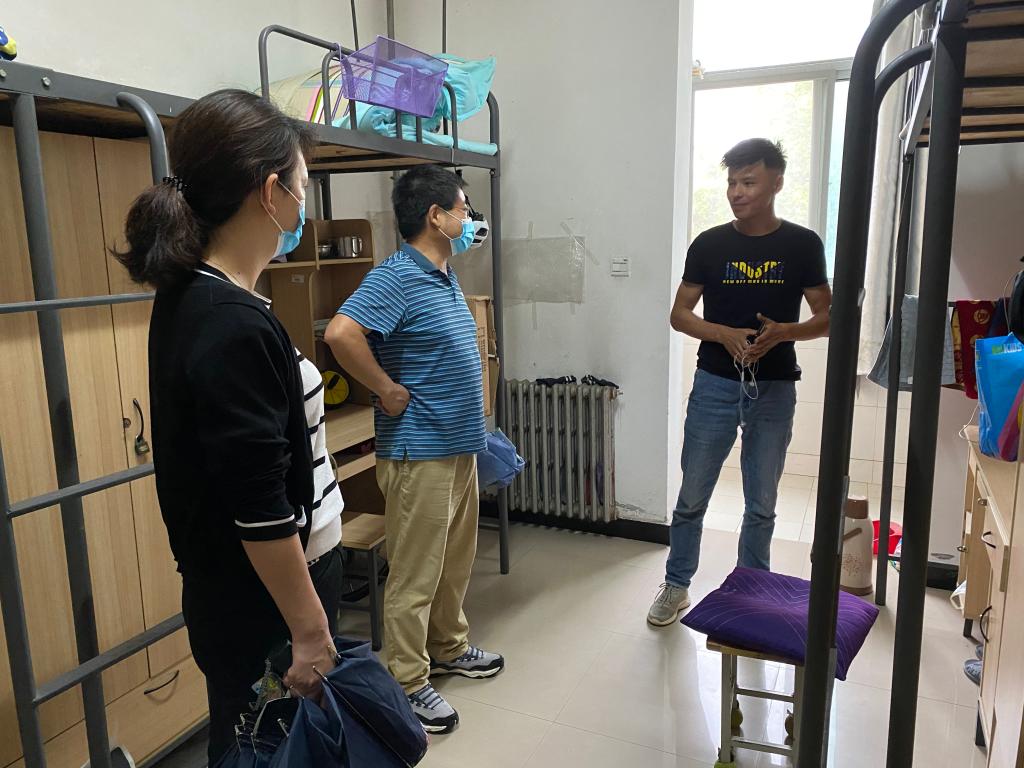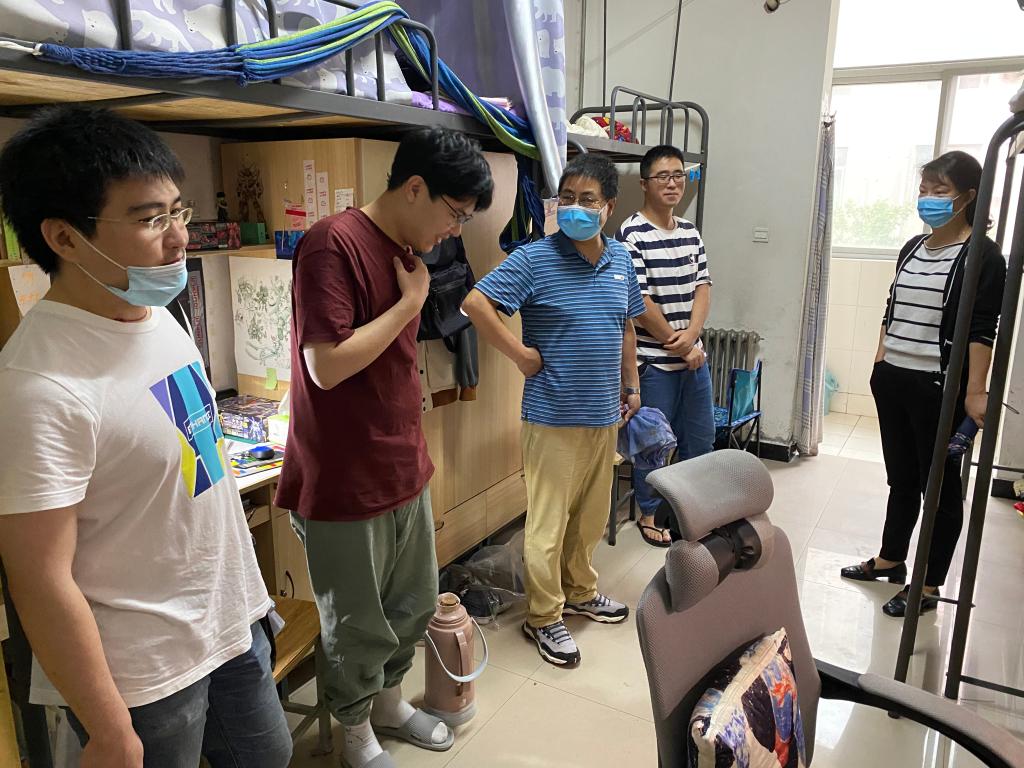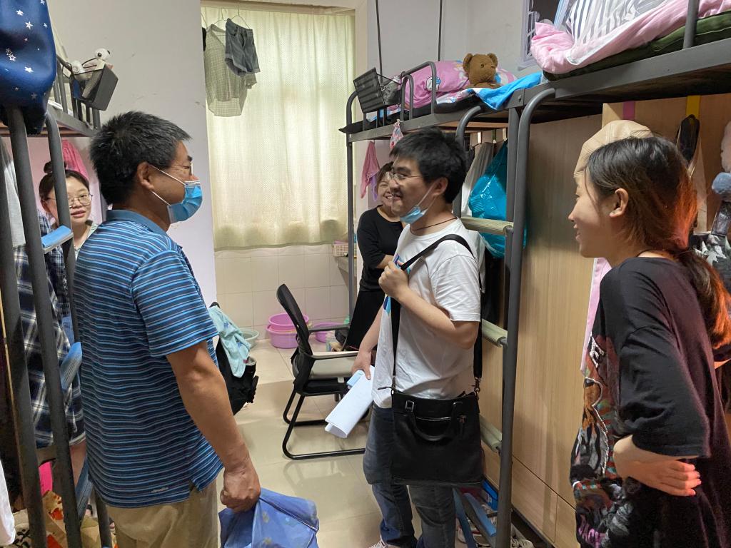 走訪中,余書記向學生詳細了解了宿舍衛(wèi)生安全狀況以及個人防護物品發(fā)放的情況,叮囑他們特殊時期要做到勤通風、勤洗手、戴口罩。盛書記希望同學們保持樂觀積極的心態(tài)和科學健康的生活方式,配合做好每日健康申報工作。學生們表示,理解學校在非常時期采取的封閉管理措施,將在日常生活中保持宿舍衛(wèi)生及通風,不給疫情防控工作增加壓力。