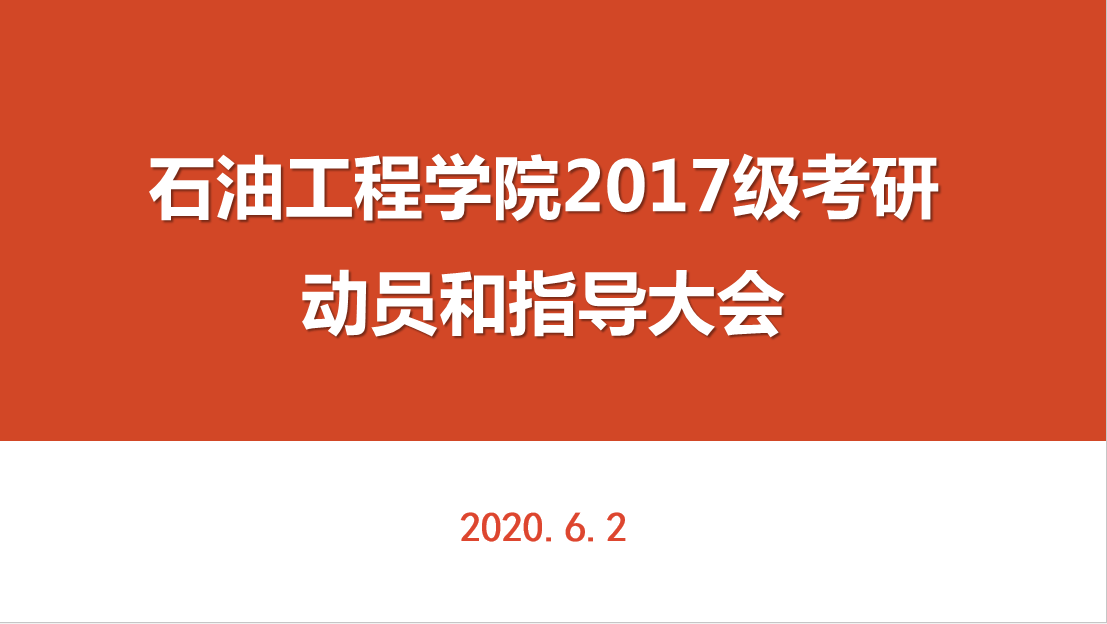 為進一步提高考研積極性,增進學生對考研的了解,挖掘自身潛能,石油工程學院于62日下午2點召開2017級考研動員和指導大會。院長周德勝、黨委副書記張建高、副院長劉志坤、學工辦主任朱戰(zhàn)威、研究生教學管理負責老師王小香和2016級考研學生代表出席本次會議,2017級有考研意愿同學參加本次大會,會議由2017級輔導員孫浩哲主持。