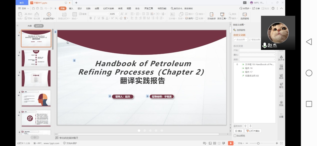 每位學(xué)生以PPT形式展示匯報開題內(nèi)容并進(jìn)行答辯。開題學(xué)生向答辯老師就選題意義、文獻(xiàn)綜述、主要內(nèi)容、創(chuàng)新點及進(jìn)度安排等進(jìn)行了陳述,并回答老師的提問。答辯小組對各位研究生的開題報告分別進(jìn)行了有針對性的現(xiàn)場點評,指出了存在的問題和修改意見,并要求同學(xué)們根據(jù)意見及建議認(rèn)真地對選題及內(nèi)容進(jìn)行調(diào)整和修改。