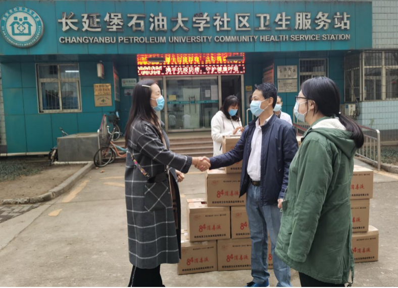 2020年3月28日下午,經(jīng)濟管理學(xué)院商務(wù)1801班賈歡煦同學(xué)在父親的陪同下從咸陽來到學(xué)校捐贈疫情防控物資。國有資產(chǎn)處、校醫(yī)院代表接收捐贈。