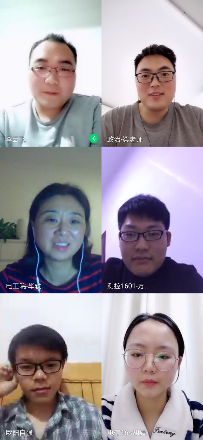 畢書記表示,疫情發(fā)生以來(lái)學(xué)院一直牽掛著每一位湖北籍學(xué)生,各年級(jí)輔導(dǎo)員老師第一時(shí)間與湖北籍學(xué)生取得聯(lián)系、密切溝通,看到同學(xué)們精神風(fēng)貌良好,個(gè)人及家人身體健康,大家能夠遵守當(dāng)?shù)匾咔榉揽毓ぷ饕?,做好居家隔離,感到非常欣慰。學(xué)院會(huì)繼續(xù)加強(qiáng)對(duì)同學(xué)們的幫扶和指導(dǎo),最大限度減少疫情對(duì)畢業(yè)設(shè)計(jì)(論文)、考研、就業(yè)等的影響。最后,畢書記向同學(xué)們提出四點(diǎn)希望:一是要堅(jiān)定決勝信心。自新冠肺炎疫情發(fā)生以來(lái),黨中央高度重視,習(xí)近平總書記親自指揮、親自部署,舉全國(guó)之力支持湖北,疫情防控積極向好的態(tài)勢(shì)不斷好轉(zhuǎn),充分彰顯了中國(guó)共產(chǎn)黨領(lǐng)導(dǎo)和中國(guó)特色社會(huì)主義制度的顯著優(yōu)勢(shì)。同學(xué)們要堅(jiān)定信心,做抗“疫”戰(zhàn)士,為戰(zhàn)勝疫情貢獻(xiàn)力量。二是要積極投入學(xué)習(xí)。學(xué)院目前正在根據(jù)教育部、省教育廳和學(xué)校關(guān)于新型冠狀肺炎疫情防控工作的部署要求,積極地為春季開學(xué)做準(zhǔn)備,希望同學(xué)們做好每天的身體健康監(jiān)測(cè),認(rèn)真細(xì)致填報(bào)數(shù)據(jù),服從學(xué)校安排,積極投入居家學(xué)習(xí),全力克服當(dāng)前困難,謀劃好學(xué)習(xí)生活。三是要加強(qiáng)居家防護(hù)。希望大家 “防疫”思想不要松懈,養(yǎng)成良好的衛(wèi)生習(xí)慣,堅(jiān)持鍛煉,增強(qiáng)體質(zhì),保護(hù)好自己,守護(hù)好家人。四是要勇于擔(dān)當(dāng)奉獻(xiàn)。要配合當(dāng)?shù)卣块T,積極參與疫情防控志愿工作,用實(shí)際行動(dòng)傳承“好學(xué)力行,自強(qiáng)不息”的校訓(xùn)精神,以石大學(xué)子的責(zé)任與擔(dān)當(dāng)帶頭做好社區(qū)防控與家園守護(hù)。