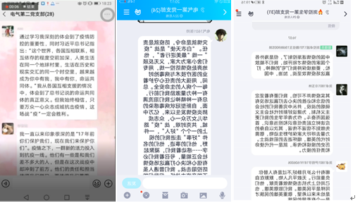 三是各年級學生和各學生黨支部黨員、預備黨員、積極分子紛紛通過撰寫學習心得、思想匯報的形式總結個人學習收獲,全院累計到普通學生、黨員、預備黨員和積極分子撰寫的心得體會、思想匯報1650余份。同學們紛紛表達了自己作為擔當民族復興大任的時代新人,堅信在黨中央領導下我們必將盡早戰(zhàn)勝此次疫情的信心和決心,以及通過此次抗疫防疫戰(zhàn)爭更見堅定“四個自信”的愛國之情。