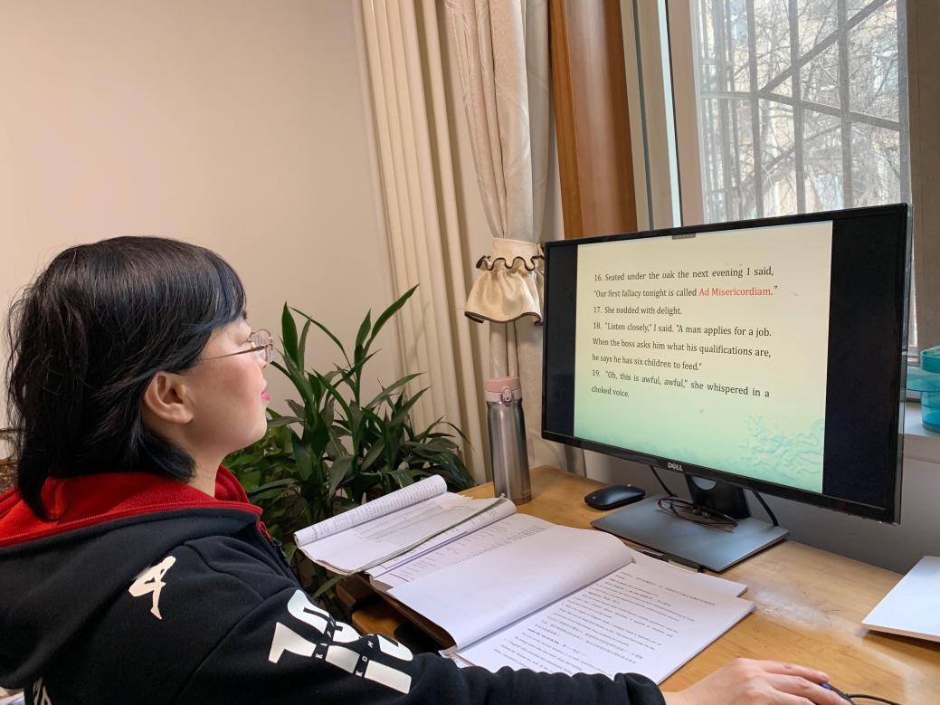 武絨老師說(shuō):“懷著惴惴不安的心情終于結(jié)束了新學(xué)期的第一次網(wǎng)絡(luò)授課!慶幸的是一切順利!騰訊會(huì)議提供了一個(gè)近乎實(shí)體課堂的語(yǔ)音互動(dòng)平臺(tái),出乎意料地感覺學(xué)生比在實(shí)體課堂更積極地參與課堂活動(dòng)!A new teaching and learning experience!”