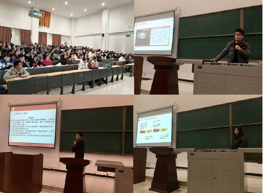 在學生黨支部書記述職評議會上,張成文等9名學生黨支部書記逐一向?qū)W院黨委及全體學生黨員報告了一年來的支部工作情況。與會黨委委員為各支部進行了評議打分。