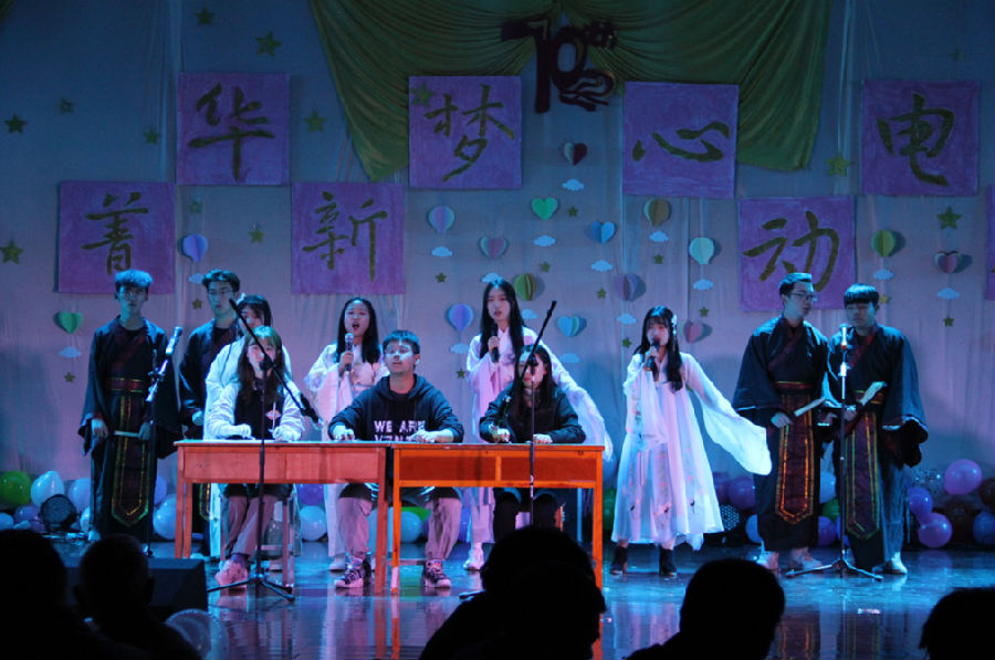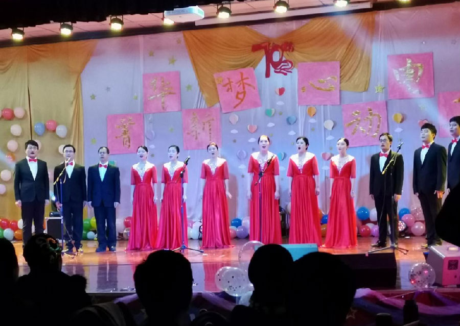 本次晚會共分“奮斗的青春最美麗”以及“不忘初心?牢記使命”兩個篇章,共有4個教工節(jié)目和11個學生節(jié)目,充分彰顯了我院師生攜手共進,共創(chuàng)佳績的精神風貌。歌曲《青花瓷》然我們感受了令人神往的江南古鎮(zhèn)古典之美;由院黨委書記何鋮等6位教授共同表演的原創(chuàng)配樂詩朗誦《六紀尋脈》展現(xiàn)了我院教授的激揚風采,表達了石油人對母校和莘莘學子的殷殷期盼;我院研究生傾情演唱的歌曲《一萬次悲傷+崇拜》唱出新一代高校大學生的夢想力量;《伊人思夢》以水袖舞和古風歌曲的表現(xiàn)形式,展現(xiàn)了中華傳統(tǒng)文化之美;南瓜車上的《灰姑娘》幽默但不美麗,可愛但不精致,卻深深吸引住同學們的眼球;維吾爾族舞蹈《情之光》熱情洋溢;舞臺劇+朗誦《奮進石油人》展現(xiàn)了我院學子的石油情懷。由院長仵杰教授領(lǐng)隊的12名教師合唱的《映山紅》和《祖國不會忘記》展現(xiàn)了我院教師靚麗的形象和專業(yè)的唱功,退休教授漢澤西老師朗誦的《沁園春?雪》將觀眾帶回了那個過去的年代,感悟了一代代為電子工程學院發(fā)展做出貢獻的前輩們的忘我精神境界。由學院自動化專業(yè)阮巖副教授指導的教工集體舞《我和我的祖國》在鮮艷的中國紅舞裙襯托下的教師們優(yōu)美的舞姿再次將晚會推向高潮。晚會最后在歡快愉悅的的吉他彈唱《少年錦時》中落下了帷幕。