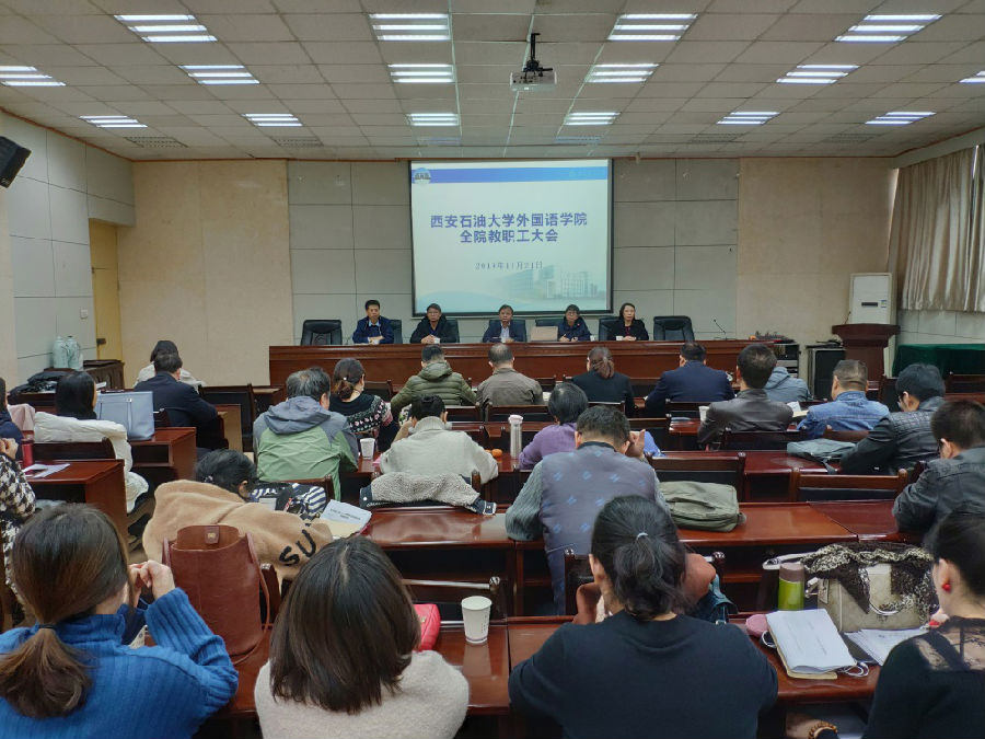 11月21日下午,外國(guó)語學(xué)院在雁塔校區(qū)第三會(huì)議室召開全院教職工大會(huì)暨師德師風(fēng)專題學(xué)習(xí)會(huì),學(xué)院全體教職工參加會(huì)議,會(huì)議由學(xué)院黨委書記蔡強(qiáng)主持。