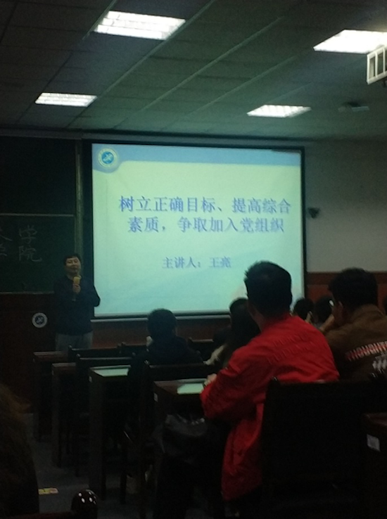 與此同時,雁塔校區(qū)入黨積極分子培訓(xùn)班第一講在本部東階201室舉辦,由校黨委組織部副部長王亮以“樹立正確目標(biāo),提高綜合素質(zhì),爭取加入黨組織”為題講授。王部長提出“未進(jìn)黨的門,先做黨的人”,要求入黨積極分子要樹立正確的人生目標(biāo),培養(yǎng)明確的行為傾向,提高綜合素質(zhì),努力做到思想入黨。他強(qiáng)調(diào),要樹立正確的人生目標(biāo),需要不斷學(xué)習(xí),提升素養(yǎng),加強(qiáng)自信,樂觀拼搏。不斷學(xué)習(xí),提升素養(yǎng)是肩負(fù)責(zé)任、人生發(fā)展和適應(yīng)時代的需要。只有學(xué)習(xí)有深度,認(rèn)識才能有高度;要及時思考目標(biāo)定位,明確如何學(xué)會做人、做事、學(xué)習(xí);要明確自己的局限,明確目標(biāo),征服自己才是最大的勝利。他希望同學(xué)們加強(qiáng)學(xué)習(xí),增強(qiáng)品質(zhì),不斷提升黨性修養(yǎng),深入實踐,提高素質(zhì),充分發(fā)揮模范作用,勇于創(chuàng)新。希望同學(xué)們懂得責(zé)任和奉獻(xiàn),為把祖國建設(shè)得更加美好而奮斗。