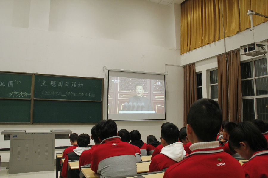 2019年11月12日晚,地球科學(xué)與工程學(xué)院團(tuán)委在鄠邑校區(qū)開展 “我和我的祖國”主題團(tuán)日活動,學(xué)院200余名團(tuán)員參加。