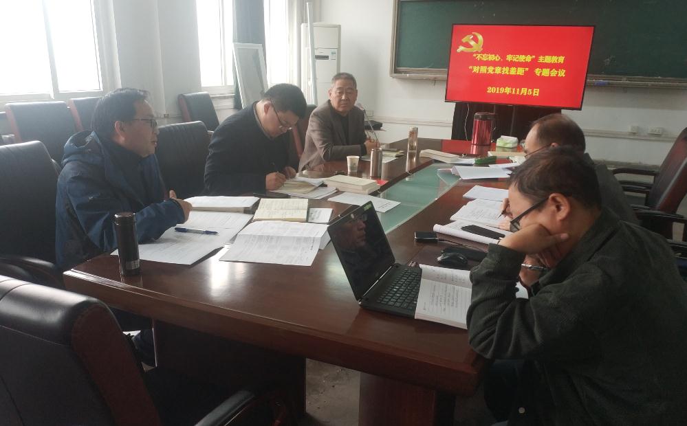 按照學(xué)校“不忘初心、牢記使命”主題教育領(lǐng)導(dǎo)小組《關(guān)于在“不忘初心、牢記使命”主題教育中做好對照黨章黨規(guī)找差距的通知》的要求,學(xué)院召開“對照黨章找差距”專題會議,黨總支書記李淵、副院長張海濤、副院長肖發(fā)榮三位處級領(lǐng)導(dǎo)干部逐條對照黨章、《準(zhǔn)測》、《條例》和《中國共產(chǎn)黨工作機(jī)關(guān)條例(試行)》等內(nèi)容,認(rèn)真查擺存在問題。
