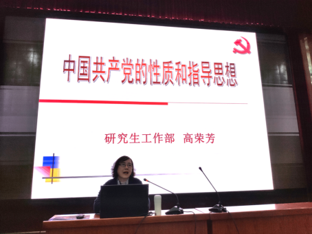 11月2日上午8點(diǎn),本期入黨積極分子培訓(xùn)班開班儀式暨第一講正式開始。研究生工作部部長(zhǎng)高榮芳出席了開班儀式,并對(duì)全體參訓(xùn)學(xué)員從培訓(xùn)紀(jì)律、學(xué)習(xí)態(tài)度等方面提出了要求,希望大家自覺增強(qiáng)組織紀(jì)律觀念,嚴(yán)格遵守培訓(xùn)班相關(guān)要求,認(rèn)真學(xué)習(xí)。培訓(xùn)班班主任強(qiáng)調(diào)了本次培訓(xùn)的考核指標(biāo)和方式,并對(duì)培訓(xùn)課程內(nèi)容、授課計(jì)劃、討論環(huán)節(jié)等進(jìn)行了說明。隨后高榮芳部長(zhǎng)開啟了本次培訓(xùn)的第一講——中國(guó)共產(chǎn)黨的性質(zhì)和指導(dǎo)思想。