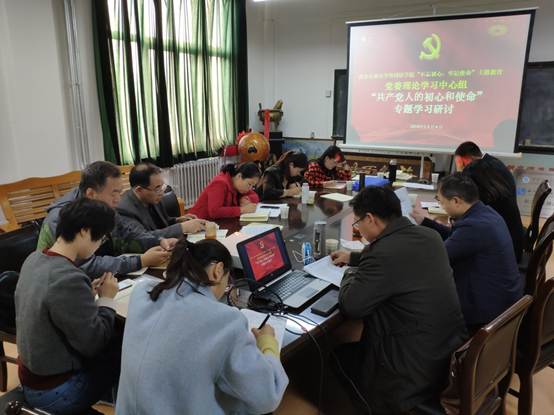在“共產(chǎn)黨人的初心和使命”專題研討環(huán)節(jié),學(xué)院黨委理論學(xué)習(xí)中心組成員重點(diǎn)結(jié)合“不忘初心、牢記使命”主題教育中的黨章黨規(guī)、黨史、新中國史及習(xí)近平總書記關(guān)于作風(fēng)建設(shè)、反腐倡廉重要論述的自學(xué)內(nèi)容,交流討論了個(gè)人感想與學(xué)習(xí)收獲。大家結(jié)合本職工作,圍繞為師生服務(wù)的初心、擔(dān)當(dāng)立德樹人使命,深入表達(dá)了對共產(chǎn)黨員初心和使命的理解,對如何進(jìn)一步加強(qiáng)服務(wù)師生、服務(wù)學(xué)院發(fā)展,從深化大學(xué)英語教學(xué)改革、強(qiáng)化科研團(tuán)隊(duì)建設(shè)、提升學(xué)生思想政治教育管理效果等方面進(jìn)行了專題研討。